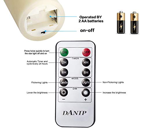 ✔ Telecomando a 10 tasti: premere due volte il pulsante NO per controllare in modo indipendente la stringa della luce stellare. Dopo aver impostato il timer, accendere le candele alla stessa ora ogni giorno per una durata di 2 ore/4 ore/6 ore/8 ore.