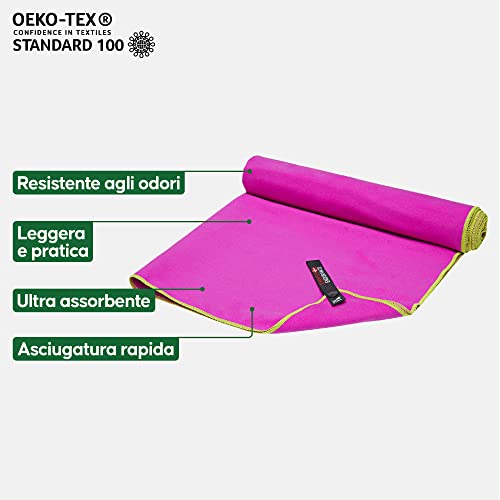 COMPATTI, ASSORBENTI E QUICK-DRY: Questi asciugamani in microfibra si asciugano fino a 10 volte più veloce di un normale asciugamano di cotone. Resistenti e delicati sulla pelle, questi asciugamani sono dotati di bordi rinforzati e una pratica cinghia ad anello per poterli appenedere ovunque