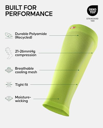 PROGETTATE IN DANIMARCA - MADE IN EUROPE: Queste fasce a compressione da running sono progettate a Copenhagen e prodotte in Portogallo, per garantire condizioni di lavoro eque. Questi gambali sono certificati OEKO-TEX e testati con la tecnologia leader svizzera MST IV per una compressione graduata ottimale per prestazioni e il recupero