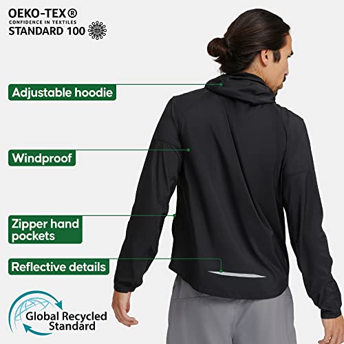PROGETTATO PER IL MOVIMENTO: Le nostre giacche da uomo hanno un cappuccio regolabile e polsini elastici per una vestibilità ottimale. I dettagli riflettenti forniscono visibilità al buio. Le tasche laterali con cerniera ti permettono di riporre in sicurezza i tuoi oggetti essenziali