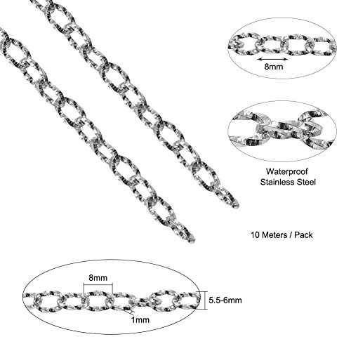 DanLingJewelry - Catena per collane, gioielli, accessori fai da te, in acciaio inossidabile, colore acciaio, 8 x 6 x 1 mm, 10 m
