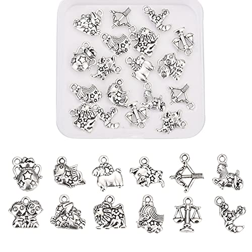 DanLingJewelry - 60 ciondoli in lega in stile tibetano, a tema costellazione, a forma di 12 segni zodiacali, per realizzare gioielli fai da te