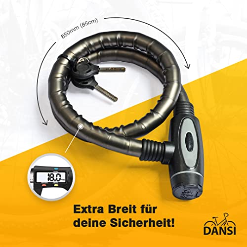 Dansi, catena con serratura, 2 chiavi, colore nero fumo opaco, Lucchetto a maglie corazzate, con 2 chiavi, 18 x 850 mm, nero fumo opaco, 44103, fumo/nero opaco, 18 x 850 mm