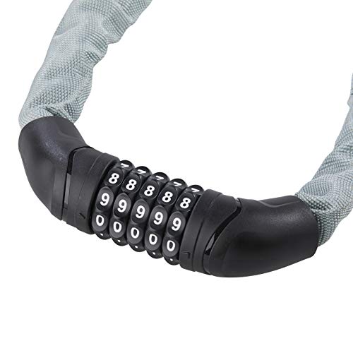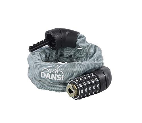 DANSI, Lucchetto a catena unisex, 6 x 900 mm, lucchetto a combinazione a 5 cifre, con rivestimento in tessuto, colore: grigio