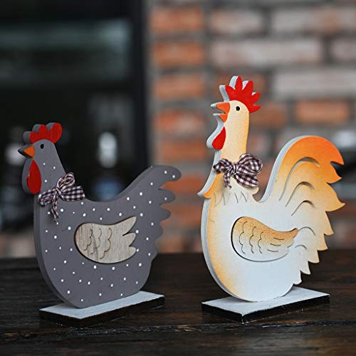 Decorazione gallina gallo pasquale in legno: la Pasqua è dietro l'angolo, il coniglietto pasquale in legno è usato come un meraviglioso regalo pasquale, ravviva la tua casa con la decorazione del albero pasquale.