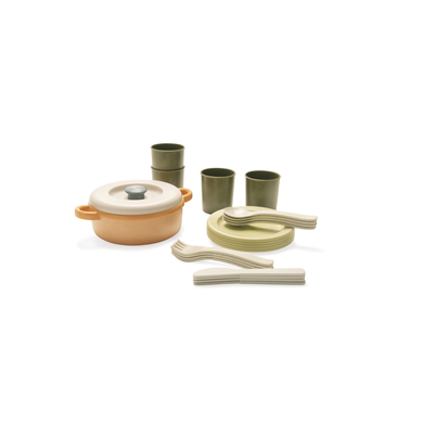 Set completo da pranzo con pentole e posate in graziosi colori modern en, realizzato in bioplastica con il marchio ecologico Nordic Swan. In totale, il set da pranzo comprende 4 coperti e vi invita a giocare e imparare. È perfetto per interni ed esterni. Il set da pranzo di dantoy è fatto di bioplastica ed è prodotto in Danimarca dalla canna da zucchero. Questo rende il prodotto riutilizzabile al 100% e realizzato con materie prime rinnovabili al 100%. Dettagli del prodotto: Dimensioni (lunghezza x larghezza x altezza): circa 35 x 19 x 17 cm Contenuto: 22 parti Privo di sostanze tossiche Realizzato con materie prime sostenibili Lavabile in lavastoviglie Età: da 2 anni Su dantoy: BIO Toy - fatto con la canna da zucchero: fatto con la canna da zucchero 95% a base biologica 100% riciclabile 100% sostenibile dantoy è all'avanguardia nell'introduzione della bioplastica: dantoy sta lanciando una nuovissima gamma di bioplastica etichettata I'm Green, che si aggiunge alla sua gamma di giocattoli di plastica già eco-friendly. La nostra bioplastica è fatta da almeno il 90% di canna da zucchero - una risorsa sostenibile - ed è riciclabile al 100%. I prodotti BIO di dantoy hanno le stesse proprietà dei nostri giocattoli di plastica convenzionali. Ciclo di vita dei prodotti BIO da dantoy: La produzione di bioplastiche abbassa il contenuto di CO2 nell'atmosfera La canna da zucchero viene coltivata in piantagioni controllate e senza tossine nel Brasile centrale e meridionale La canna da zucchero viene raccolta ogni sei o dodici mesi Le bioplastiche ottenute dalla canna da zucchero sono una materia prima sostenibile al cento per cento tiger Attenzione Non adatto al microonde.