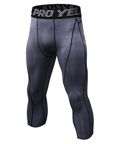 DaobaMEN Pantaloni da Corsa da Uomo - Pantaloni da Fitness a 3/4 da Uomo, con Azione di Compressione e Funzione Quick-Dry
