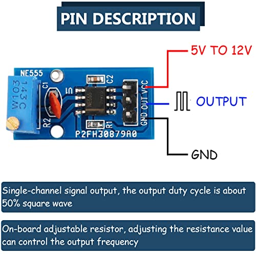DAOKAI 5Pcs NE555 Generatore di impulsi 555 Modulo timer Uscita segnale a canale singolo Generatore di segnale a onda rettangolare a frequenza regolabile per apprendimento MCU con cavo Dupont