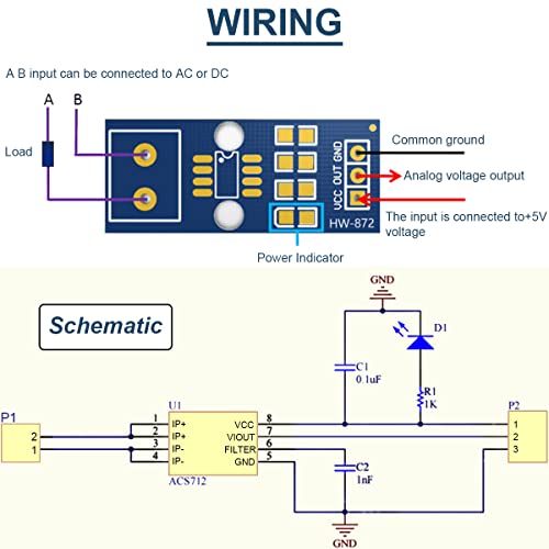 ⚡[Campo di precisione (IP)] Il modulo può misurare una corrente positiva e negativa di 20 A, corrispondente all'uscita analogica 100 mV/A;