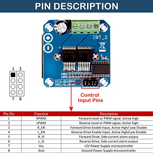 [Chip BTS7960] Modulo di azionamento a ponte H composto da chip di azionamento ad alta potenza BTS7960, con protezione da surriscaldamento e sovracorrente. Doppio driver a ponte H BTS7960 di grande corrente, limita l'uscita di corrente fino a 43 A, con un forte effetto di azionamento e freno.