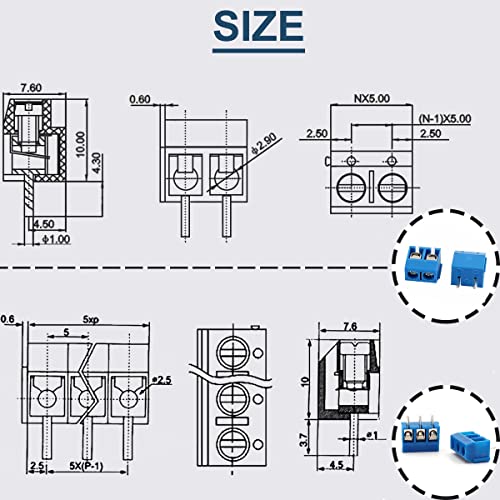 DAOKAI KF301 Morsettiera PCB Passo 5 mm 2P 3P 4P Connettore a Vite di Montaggio Blu (20 x 2 Pin, 20 x 3 Pin, 20 x 4 Pin) per Breadboard con Cacciavite Phillips