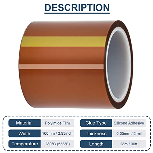 DAOKAI 100 mm x 33 m (108 piedi) Nastro per alte temperature Nastro per alte temperature Nastro in poliimmide resistente al calore Nastro in kapton per mascheratura/saldatura/stampanti 3D/batteria