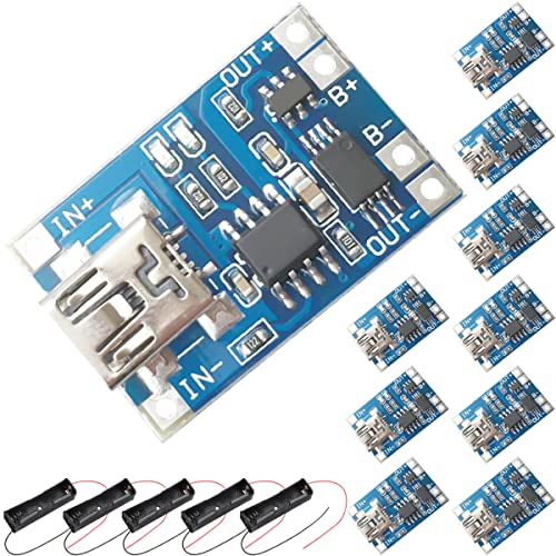 DAOKAI Scheda di Ricarica della Batteria al Litio, 10PCS Mini Modulo di Carica di Ingresso dell'Interfaccia USB 5V 1A 18650 Portabatteria agli Ioni di Litio, con Doppia Protezione