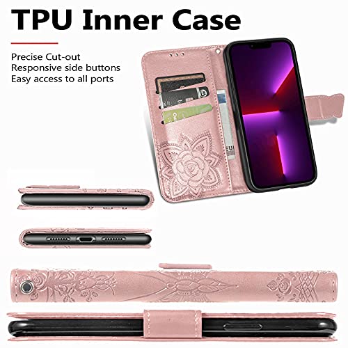 Daole Custodia Portafoglio per Iphone 13 Pro Max Farfalla Oro Rosa, Cover in Pelle per Iphone 13 Pro Max con Porta Carte, Custodia Chiusura Magnetica Della Patella per Iphone 13 Pro Max Floreale Donne
