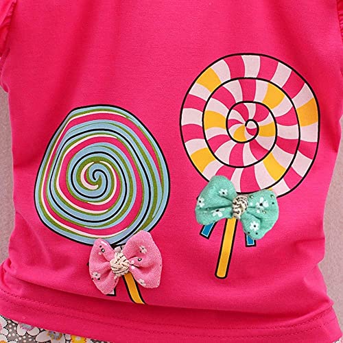 Daoope Abbigliamento Bambino Estate Abiti Cerimonia Bambino 1 2 3 4 7 8 Anni Vestiti Completino Bambino Ragazza Lollipop T-Shirt Tritata Fiore Pantaloncini Set (2-3 Anni, Hot Pink)
