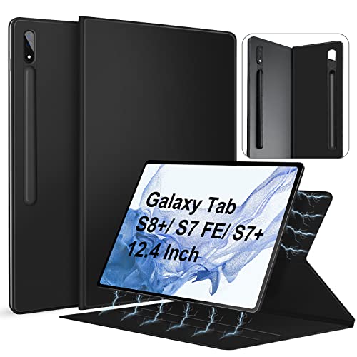 DAORANGE Custodia Cover Magnetica per Samsung Galaxy Tab S8 Plus 2022/ S7 Plus / S7 FE 12,4 Pollici, Custodia Smart Sottile con Portapenne Nascosto per Samsung Tablet S8+/ S7+ / S7 FE 12.4" (Nero)