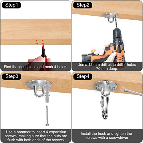 DAOUZL Gancios per Soffitto, SUS304 Ganci di Sospensione Heavy Duty capacità Portante 450KG, per Altalena, Amaca, Yoga, Sacco da Boxe
