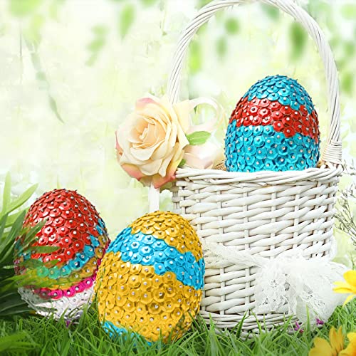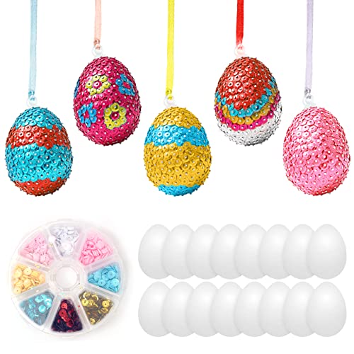 DAOUZL Uova di Pasqua Decorazioni, 26 Pezzi Uova di Polistirolo, Appendere Fai da Te di Pasqua per La Decorazione e Regalo, Paillettes Colorate Spille per Artigianato e Decorazioni