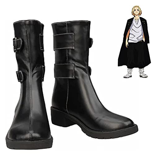 Dapuly Mikey Sano Manjiro Cosplay 1 paio di scarpe giapponesi Tokyo Revengers Anime Nera Scarpe Cosplay Stivaletti Antiscivolo PU Pelle Middle Tube Boots