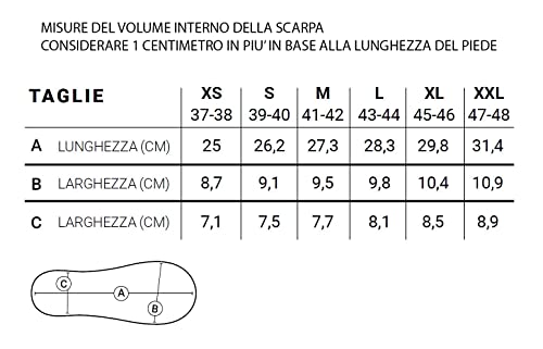 TAGLIE XSmall da tg 37 a tg 38 Small da tg 39 a tg 40 Medium da tg 41 a tg 42 Large da tg 43 a tg 44 XLarge da tg 45 a tg 46 XXL da tg 47 a tg 48