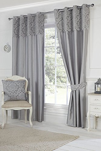 Hamilton McBride®, Darcy, coppia di tende pronte per essere appese, con occhielli nella parte superiore, colore grigio, completamente foderate, 116 x 137 cm circa.