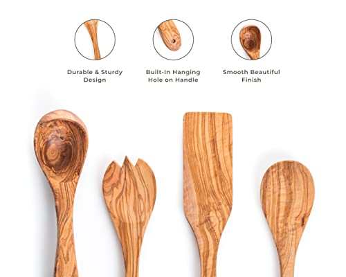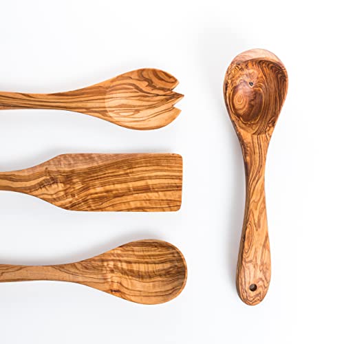 Darido Set 4 Mestoli da 30 cm ca. - Fatti a Mano in Legno d'Ulivo Naturale - Utensili da Cucina Resistenti a Calore e Graffi - Cucchiarelle Legno Spatole Cucina