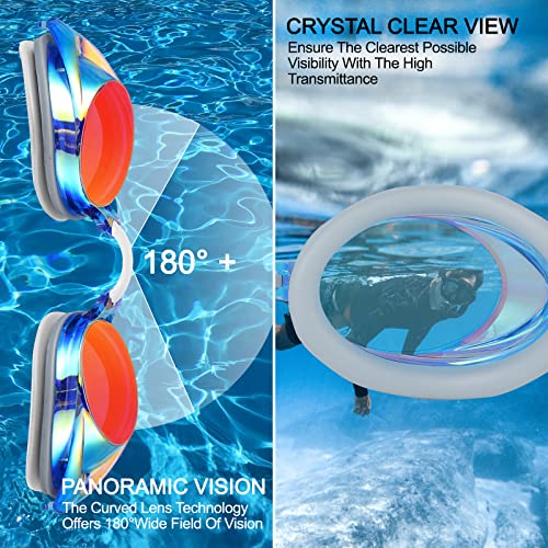 Eccellente protezione UV: Questa lente a specchio in policarbonato può bloccare i dannosi raggi UV per fornire una migliore protezione degli occhi e ridurre l'abbagliamento. 100% protezione UV protegge gli occhi dalla luce forte e dai dannosi raggi UV. Può anche ridurre l'interferenza e la stimolazione della luce forte per gli occhi, aiutarti a sviluppare meglio il tuo potenziale fisico, migliorare le prestazioni di competizione o farti più divertimento durante il nuoto.