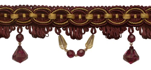 Dark magenta oro 7,6 cm pollici nappa perline frangia, Style # BF300 color: DK. Magenta/oro - PLG321 (, venduto al metro)