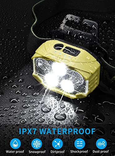 【AGGIORNAMENTO COMPLETO】 - La nuova lampada frontale ricaricabile completamente aggiornata che abbiamo realizzato dopo aver raccolto le voci di tutti gli utenti. Il faro hardhat ha 2 tasti funzione indipendenti. Perle della lampada 3XPG + 2RGB aggiornate, raggio più lungo e più luminoso. Il sensore di movimento e le impostazioni della luce a quattro colori soddisfano perfettamente le tue esigenze: campeggio (bianco), pesca (blu/verde), caccia (rosso).