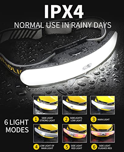 DARKBEAM Lampada frontale ricaricabile a LED Torcia ad alto lume USB COB Proiettore Faro impermeabile - Manutenzione e costruzione - Luce da lavoro per casco - Ciclismo Pesca all'aperto, 2 pezzi
