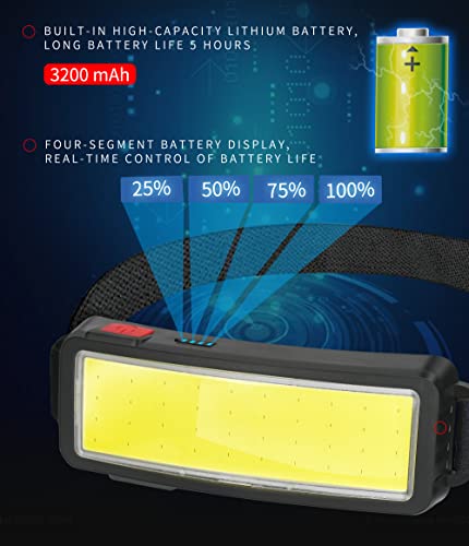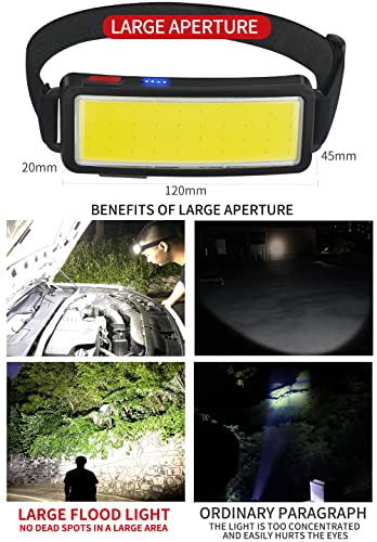 DARKBEAM LED Lampada frontale Torcia USB Ricaricabile COB Proiettore Faro leggero impermeabile - Manutenzione e costruzione dell'auto - Luce da lavoro per casco - Ciclismo Pesca all'aperto, 2 pacchi