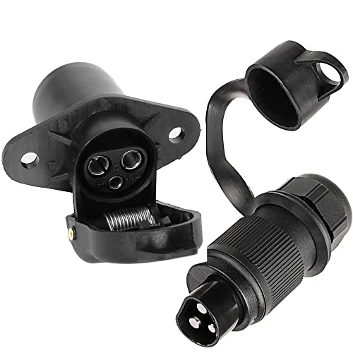 【Presa a spina】 Spina per trattore da 1 pezzo a 3 pin e presa per trattore da 1 pezzo a 3 pin adatta per veicoli 12v 24v. Connettori per spina per rimorchio a 3 pin adatti per portabiciclette per rimorchio per camper, camper, camper.