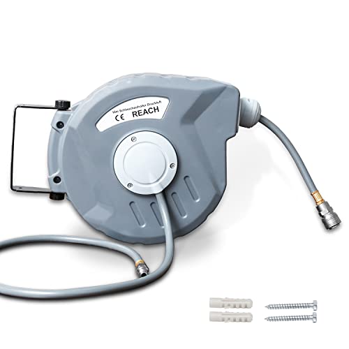 Alta qualità: il nostro tamburo ad aria compressa offre un tubo flessibile dell'aria anche in caso di freddo. L'avvolgitubo ha un alloggiamento in plastica stabile e resistente ai raggi UV, protegge il tubo dall'usura. Adattatore di ingresso in alluminio.