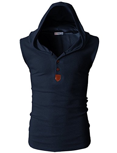 Darrin Uomo Moda T-Shirt con Cappuccio Slim Fit Senza Maniche Magliette Canotte Gilet Sport (M, Marina)
