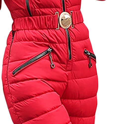 Darringls Tuta da sci da donna, tuta intera con cappuccio, tuta da sci lunga, invernale, calda, neve, sci, set con chiusura lampo, tuta impermeabile, Colore: rosso, L