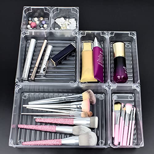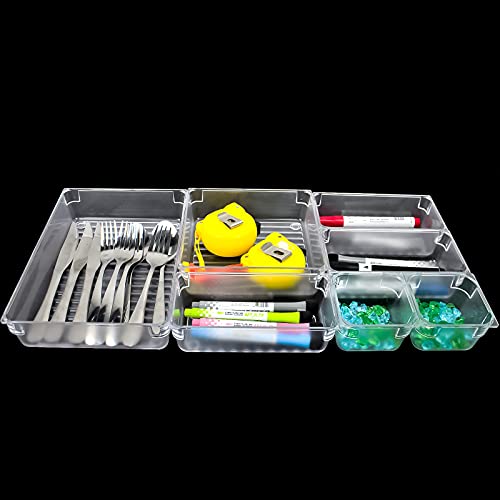 Daruite organizer cassetti,divisori piccoli scatole per cassetti per scrivania,plastica trasparente, per riporre oggetti in cucina, organizer per trucco,ufficio,camera da letto,bagno,scrivania-7pcs