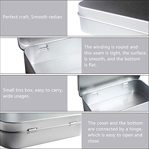 DARUITE 6 Pezzi Scatola Latta in Argento con Coperchio, Portatile Rettangolare Mini Portaoggetti Tin Box - 9,5 x 6 x 2,2 cm