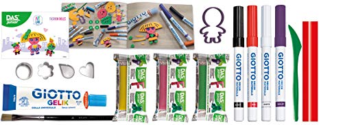 Gli strumenti contenuti sono: un taglino doll e 4 taglini per modellare la pasta, una colla per assemblare, 4 pennarelli giotto decor per decorare e tutti gli accessori necessari di supporto