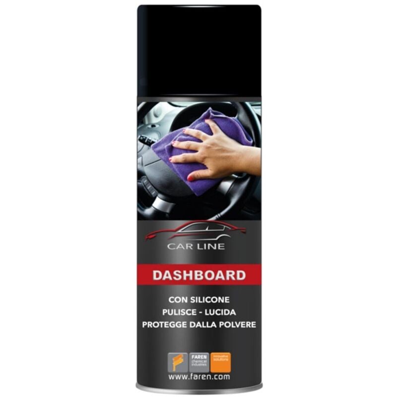 DASHBOARD PULITORE LUCIDANTE PER CRUSCOTTI AL SILICONE. Esercita un'azione antistatica che previene il depositarsi della polvere. Protegge per lungo tempo. Può essere utilizzato su qualsiasi superficie come ad esempio: LEGNO PLASTICA METALLO CARATTERISTICHE TECNICHE Aspetto: Liquido Incolore Solubilità in acqua: Insolubile Densità relativa: 0,630 kg/lt pH: nd Odore: Profumato MODALITA' DI UTILIZZO Spruzzare il prodotto sulla superficie e stendere omogeneamente con un panno morbido in cotone e/o microfibra.