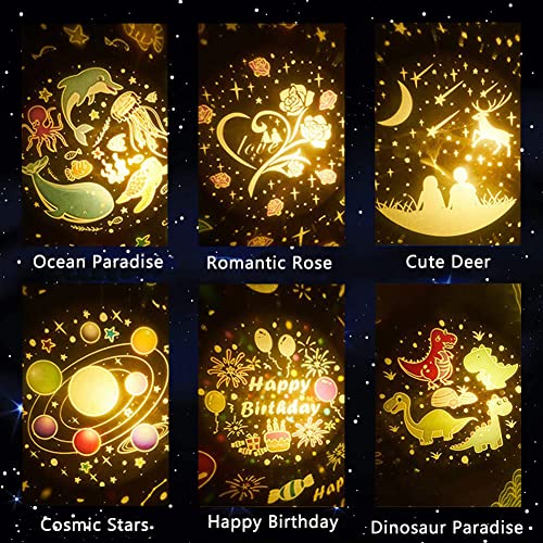 DASIAUTOEM Lampada Proiettore Stelle Bambini, Luce Notturna Proiettore Luci con 6 Pellicole Proiettore, 360° Rotazione Stellato Proiettore per Compleanno Regalo, Pasqua, Decorazione Della Cameretta