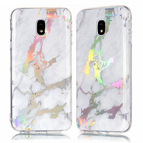 DasKAn Custodia per Galaxy J3 2017 J330, Marmo Disegni Brillante Marble Texture Back Cover Antiurto Morbido Slim Fit TPU Silicone Protettivo Custodia per Samsung Galaxy J3 2017 J330,Oro Bianco
