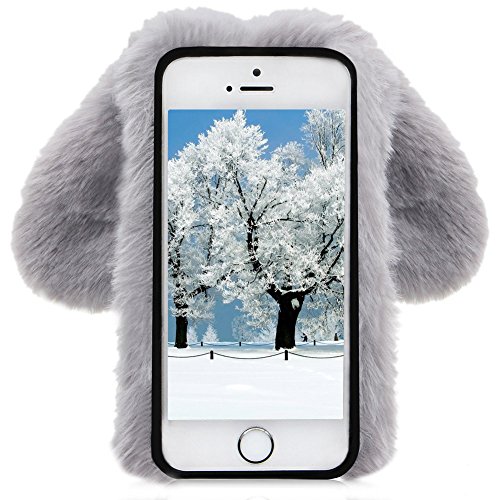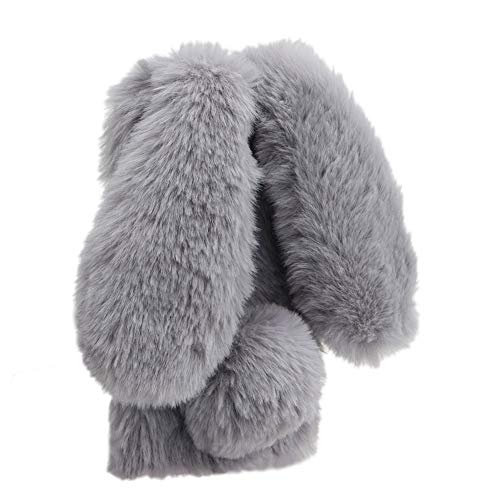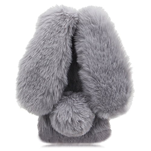 DasKAn Peluche Custodia per iPhone 7 Plus/8 Plus,Carina 3D Coniglietto Orecchio Coda Fatto a Mano Coniglio Pelliccia Capelli Soffice Caldo Bling Diamante Antiurto Custodia per iPhone 8 Plus,Grigio
