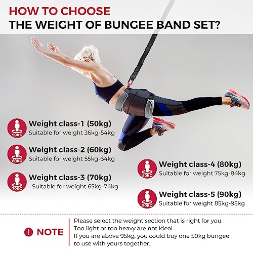 【Esercizio aerobico per tutto il corpo: il movimento Bungee consente di eseguire esercizi aerobici senza sbattere costantemente, che può portare a articolazioni instabili o vecchie lesioni. è ottimo e ideale per esercizi di agilità e plyometrici. Aiuta a migliorare la mobilità, aumentare la velocità, migliorare il senso di equilibrio. Può bruciare calorie e allenare il nucleo, i muscoli delle gambe, delle braccia e della schiena, rafforzare i legamenti.