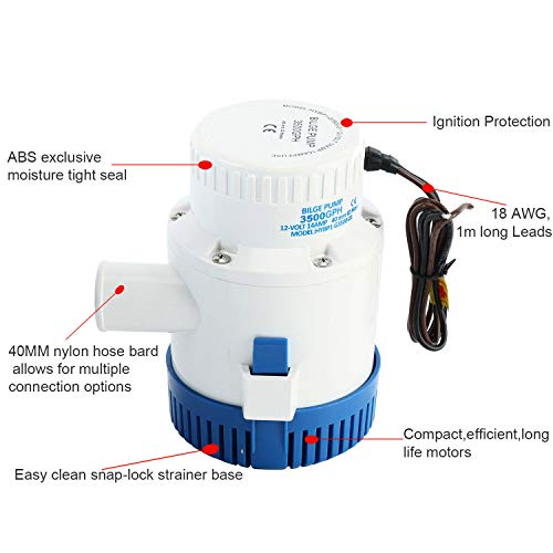 DasMorine - Pompa di sentina elettrica, 3500 GHP / 12 V, per uso nautico su barche, 40 mm, fusibile 12 A 15 A (3500 GHP)