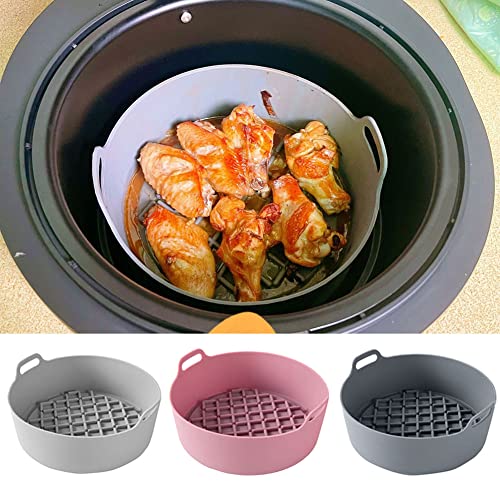 Ciotola rotonda del silicone della friggitrice ad aria per gli accessori del forno della friggitrice ad aria, ampio uso: Il nostro vaso del silicone non solo può essere usato per la friggitrice ad aria, ma anche è sicuro pe