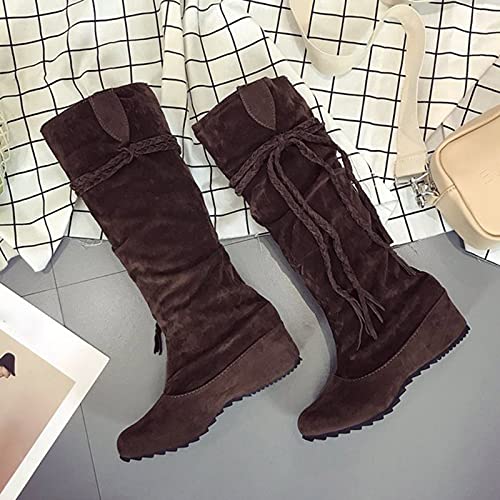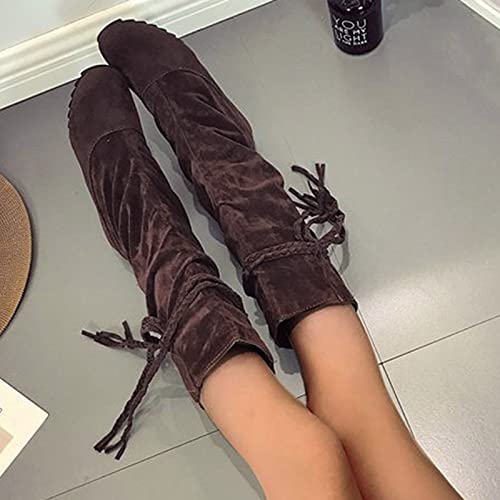 Dasongff Stivali alti da donna con tacco frange, stivali lunghi da donna, piatti, impermeabili, classici, da cowboy, impermeabili, da motociclista, marrone, 37 EU