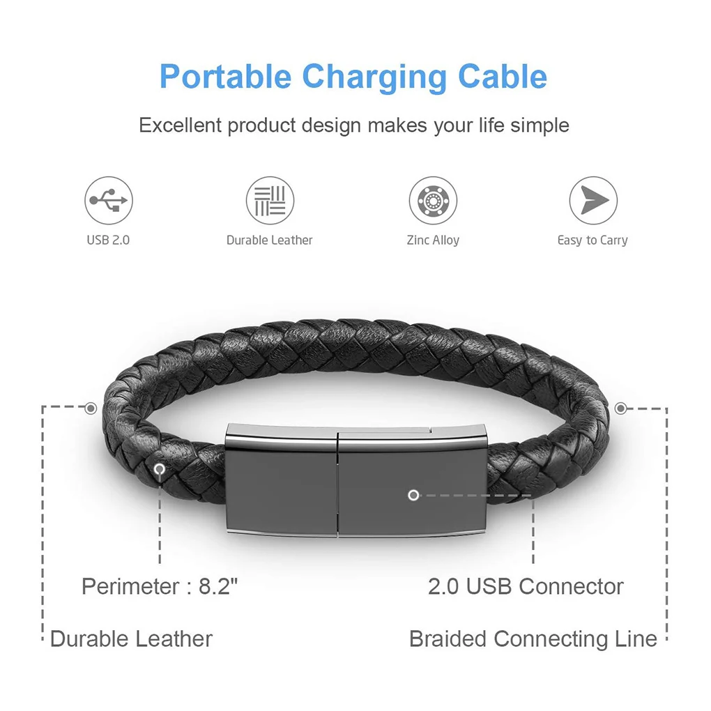 Data Line Bracelet Faux Leather Woven Bracelet Data Cable Wristband Charging Cord Braided Charging Wrist Band
