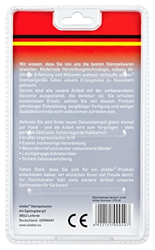 Datario valido fino al 2028, timbro per la data con abbreviazione dei mesi, altezza dei caratteri: 4 mm. Versione tedesca