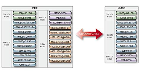 Formati audio (output): SDI (8CH, 48KHz, PCM), HDMI (8CH, 48KHz, PCM)