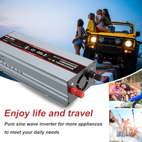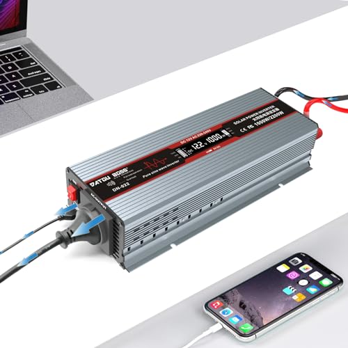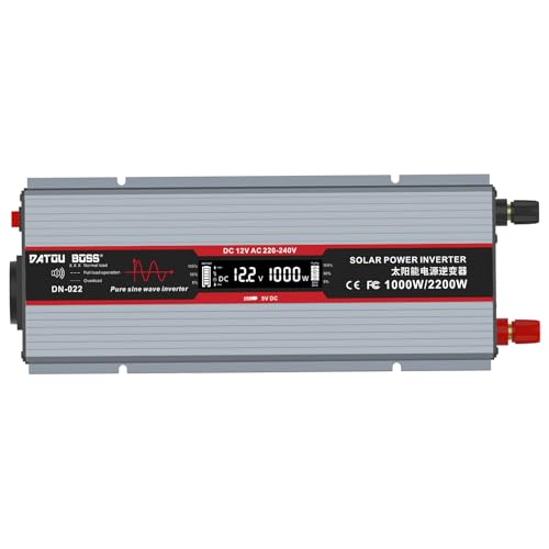 DATOUBOSS Power Inverter 12v 220v Onda Pura 1000W Convertitore Peak 2000W Invertitore - EU Presa con Uscita USB Adatto per furgoni, camion, energia solare